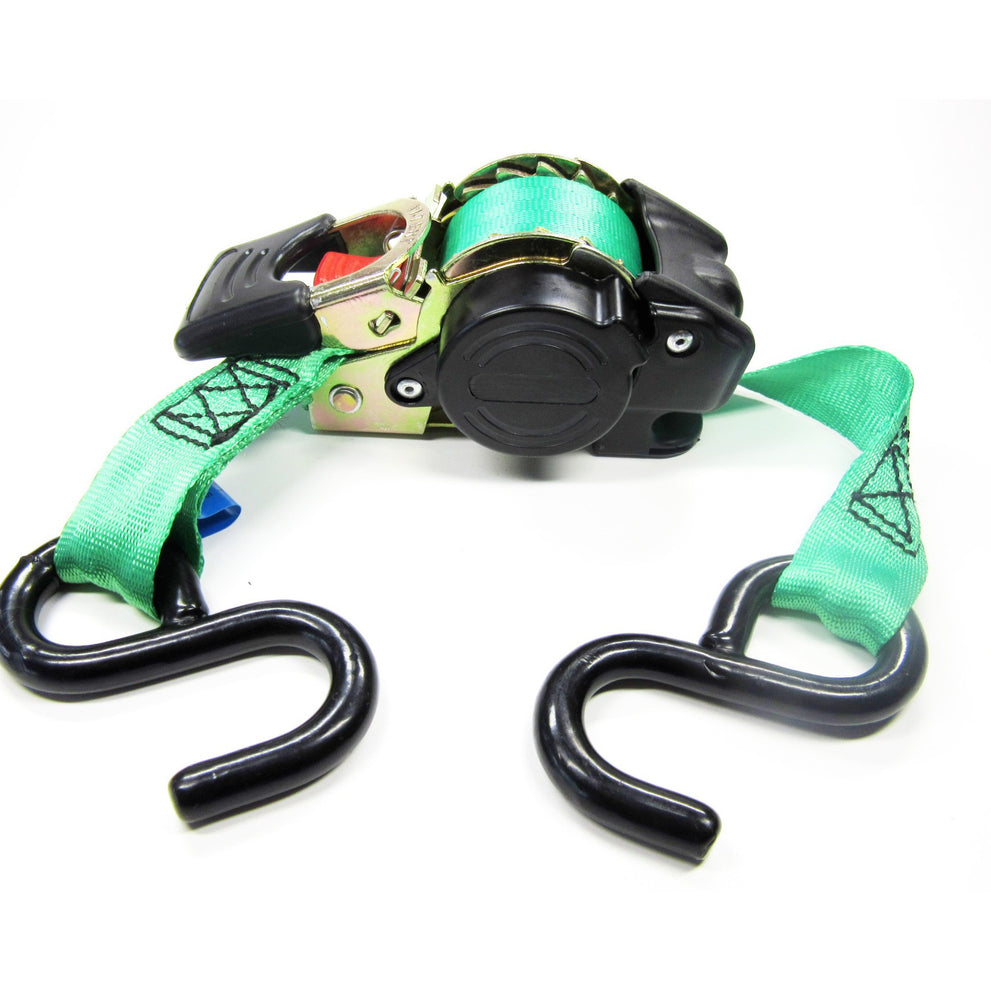 De spanband is daarnaast voorzien van 2 S-haken. Deze haken zijn van metaal gemaakt. Doordat ze van metaal zijn, weet je zeker dat ze erg sterk zijn. Deze haken zijn eigenlijk niet kapot te krijgen. Dat is natuurlijk ideaal als je de 300 kg aan goederen goed op zijn plek wil houden.