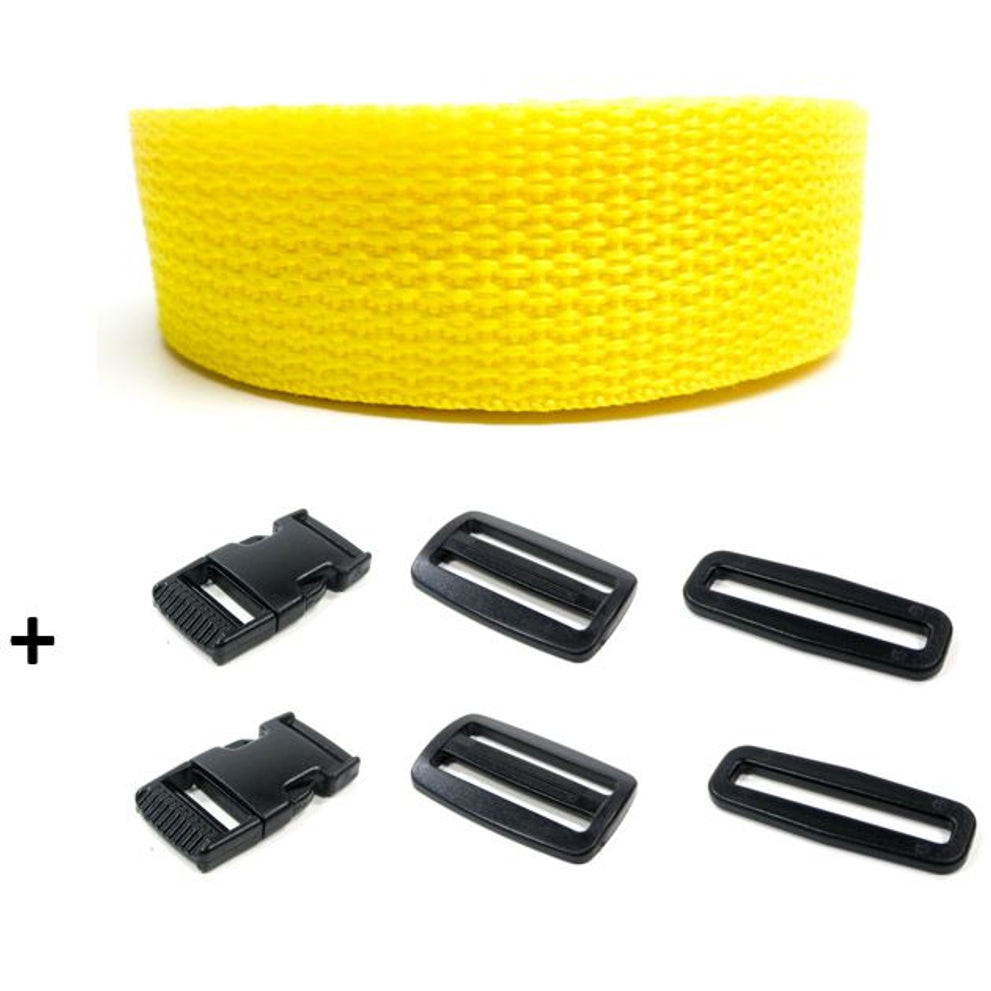 Complete set band geel en gespen 50 mm 10 meter. Deze handige complete set bestaat uit 1 spanband die ideaal aansluit op de 6 gespen. De 6 gespen zijn uitgekozen op basis van het formaat van de spanband. Het formaat van de spanband is 50 mm breed, 1.6 mm dik en 10 meter lang. Op die manier kunnen ze op de beste manier samenwerken.