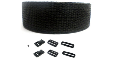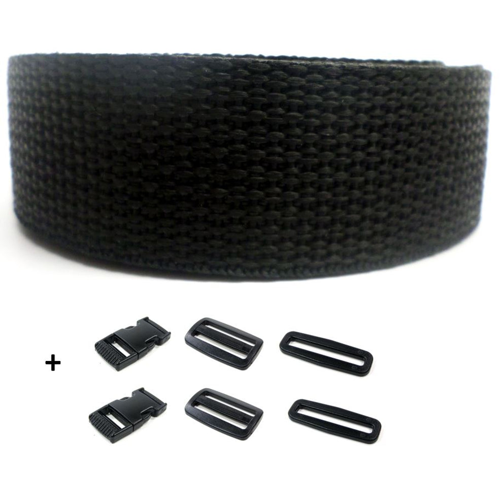 Complete set band zwart en gespen 50 mm 5 meter. Een complete set met een spanband en verschillende gespen kan erg handig zijn. Op die manier hoef je de band en de gespen niet per stuk te kopen. Dit scheelt je een hoop geld. De complete set bevat één spanband in de kleur zwart. Daarnaast zitten er in deze verpakking 6 gespen.