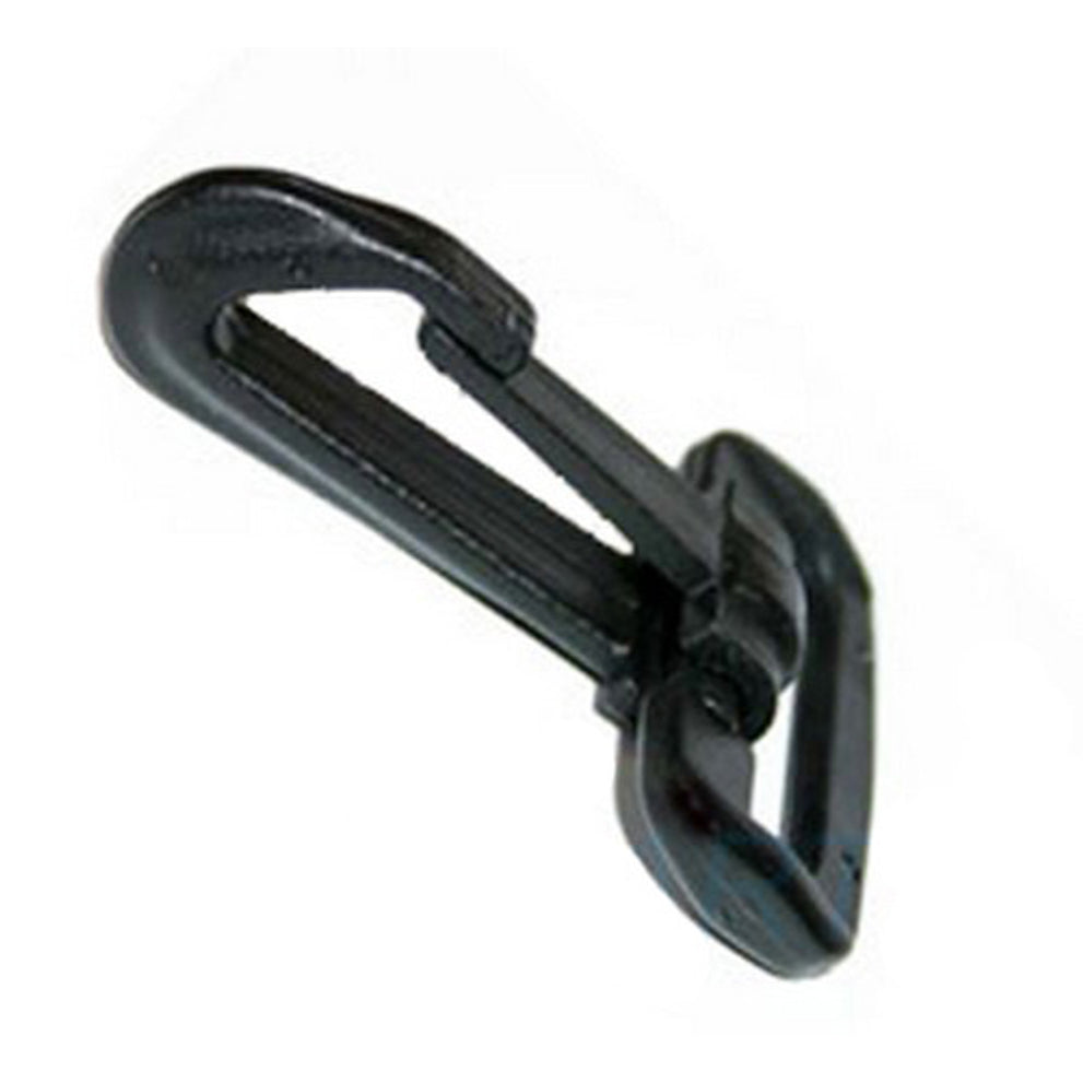 Deze uiterst handige karabijnhaak is verkrijgbaar in een zwarte kleur en is daardoor ideaal voor het bevestigen van (elastische) banden met een breedte van 40 mm. Vervaardigd uit duurzaam kunststof.