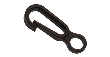 Een Simplex karabijnhaak van kunststof, met een lengte van 40 mm.