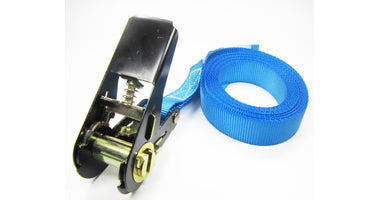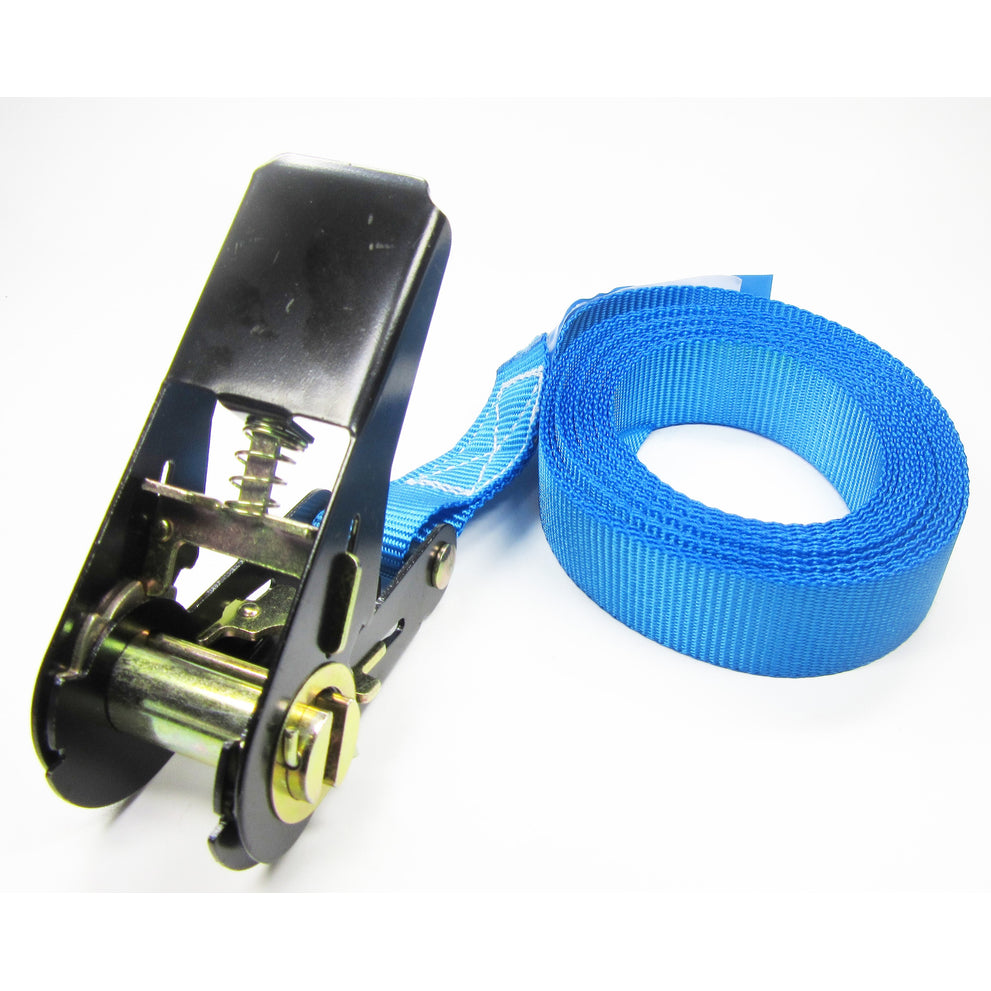 Spanband blauw met ratel 5 meter. Wie veel op de weg zit en regelmatig met zware ladingen moet werken, weet dat een goede spanband essentieel is voor het vastzetten van goederen. Een spanband oogt klein, maar kan flinke gewichten tegenhouden. De spanband blauw met ratel en 5 meter voldoet volgens de Europese EN 12195-2 norm en heeft een maximaal toegelaten spanning van 400 kg. Ladingen met een gewicht tot 800 kg kunnen met behulp van deze spanband veilig worden vastgemaakt. De spanband is 5 meter lang en 25 mm breed en weegt slechts 310 gram. Val goed op en bestel uw spanband hier snel en voordelig en kies voor veiligheid.
