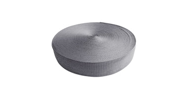 tassenband grijs 25 mm Materiaal: Polypropyleen (PP). Lengte: 1 meter. Breedte: 25 mm. Dikte: 1.3 mm.