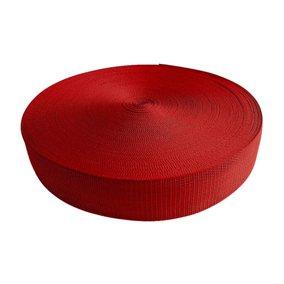 tassenband rood 20 mm Materiaal: Polypropyleen (PP). Lengte: 1 meter. Breedte: 20 mm. Dikte: 1.3 mm.